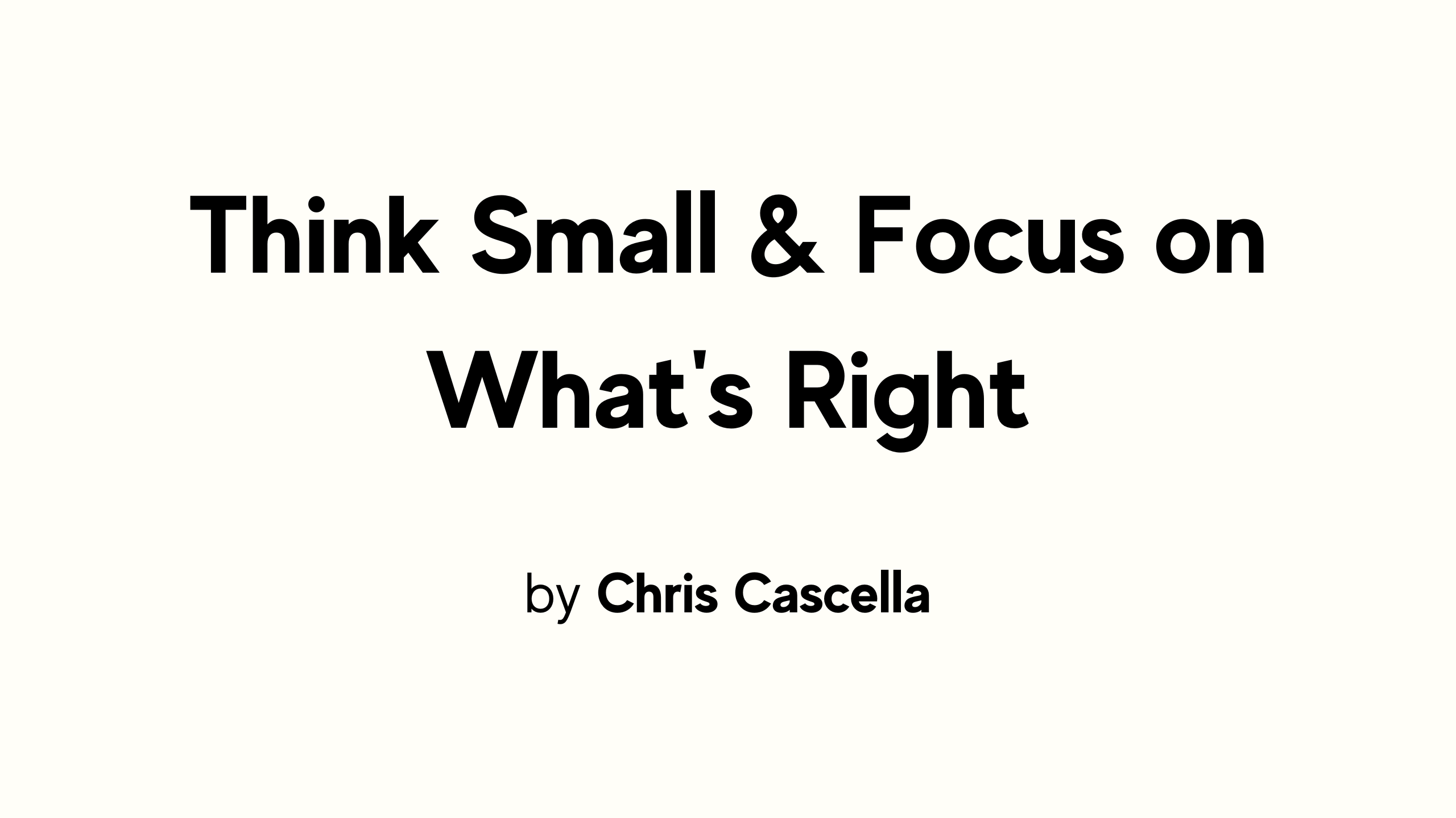 FTT: Think Small & Focus on What’s Right